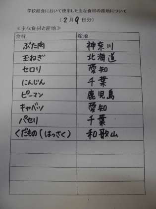 今日は肉の日です。スパゲティーミートソースは学校給食では定番で人気のある肉を使った献立です。ひき肉・ベーコンのほかに、玉ねぎ、セロリ、にんじん、ピーマン、マッシュルーム、パセリと野菜をたっぷり使って、調味料と時間の限りじっくりと煮込んで作ります。