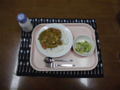 今日の献立は、ジャーマンカレーライス・牛乳・キャベツサラダ です。