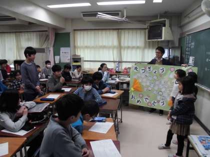 1年生は、6年生のおかげで1年間楽しく学校に通うことができました。