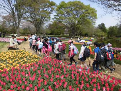 遠足で昭和記念公園へ行ってきました。お天気にも恵まれ、チューリップや菜の花が色とりどりに咲く中、思いっきり遊びました。3年生の仲がよりいっそう深まった1日になりました。