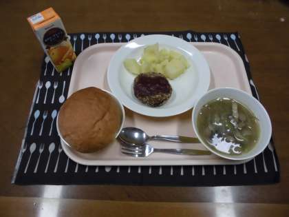 丸パン・みかんジュース・魚のメンチカツ・コーンポテト