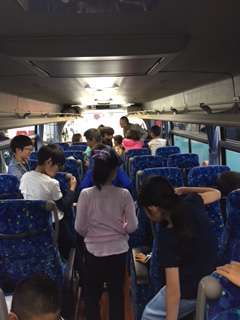 バスを降りるときや戻るときは運転手さんやガイドさんに明るく挨拶をしたり、車の前を通るときは会釈をして急いで道を渡っていたりと、学校の外でも「強く、正しく、朗らか」です。