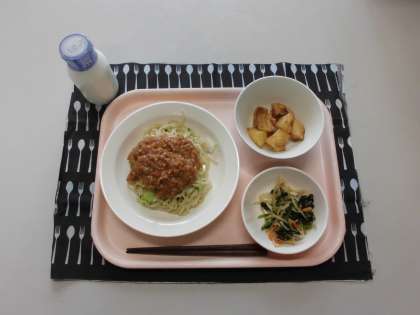 ジャージャー麺・牛乳・ナムル・じゃがいものからあげ