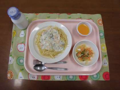 スパゲティークリームソース・牛乳・ポテト入りフレンチサラダ