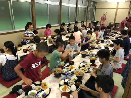 元気いっぱいの「いただきます!」の声が広間に響きます。