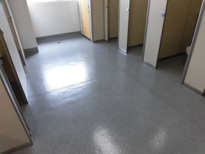 猛暑の夏休み。学校主事さん達は、計画的に協力して廊下や階段・トイレまでワックスを塗り、ピッカピカにしました。