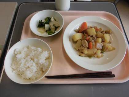 ごはん・牛乳・肉じゃがうま煮・野菜のレモンかけ