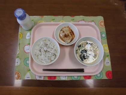 ごまごはん・牛乳・魚のピリカラ焼き・かきたま汁