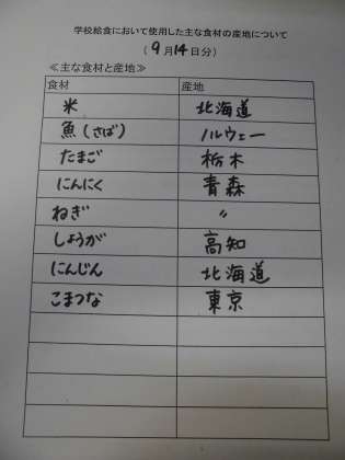 今日の魚はさばです。さばには血液をサラサラにし、脳の活動を活発にする働きのDHA・EPAを多く含まれています。今日は一味唐辛子などの調味料と野菜の9種類を使った給食室特製ピリカラソースをかけて仕上げました。