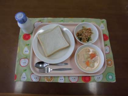 ジャムサンド・牛乳・トマトクリームスープ・桜えびのサラダ
