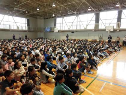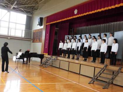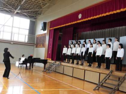 全校朝会にて、PTAコーラス部の方々の歌声が体育館にひびきました。子どもたちの顔には、優しさがあふれていました。早朝からありがとうございました。