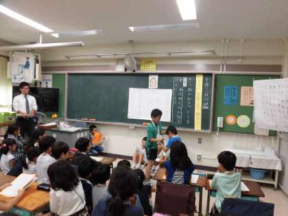 校内研究授業の2年生。国語「きつねのおきゃくさま」の劇化です。行動から気持ちを考える授業作りです。