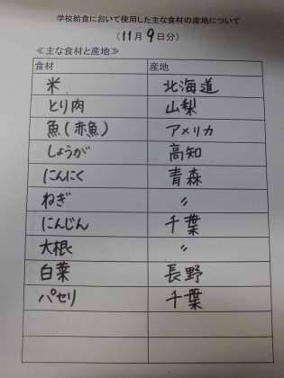 11月9日(木)の給食