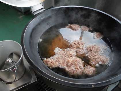 がんもどきの生地を作る時にも豆腐やひじき、ごぼう、枝豆、調味料などと一緒にだしを加えて1つ1つ形を作り、揚げました。がんもどきはお寺の料理「精進料理」の一つです。肉や魚を禁じられたお坊さんが鳥の雁(がん)に似せて作ったといわれています。ちなみに関西では飛竜頭(ひりょうず)といい、生地を熱い油に落とすと、まるで飛んでいる竜の頭のように見えたということからついたそうです。
