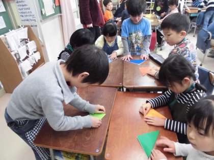 近隣の保育園の年長さんと、仲良し遊び交流会をしました。1年生は、2年生に教えてもらった折り紙や、ランドセルや教科書を見せてもらう一年生体験を計画して、保育園のお友達と遊びました。教える姿や、話を聞く様子は、成長を感じ微笑ましかったです。4月になったら1年生の年長さんを、今から、中丸小の1年生が心待ちにしています。