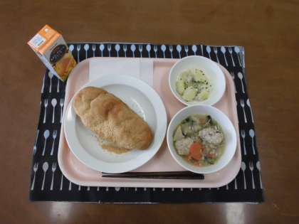 揚げパン・牛乳・肉団子入り春雨スープ・パセリポテト