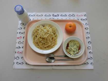 キャベツとコーンのスパゲティ・牛乳・豆入りシェパーズパイ