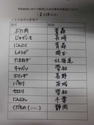 2月13日(火)の給食