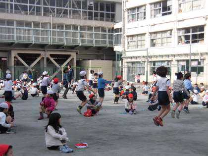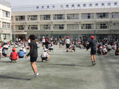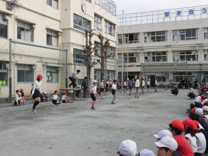 1〜3年生の部と4〜6年生の部に分けて、全児童が技に取り組みました。
