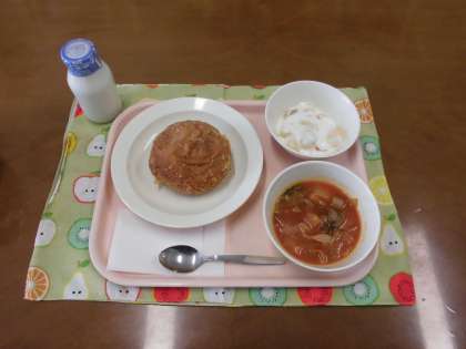 カレーパン・牛乳・ミネストローネスープ・フルーツヨーグルト
