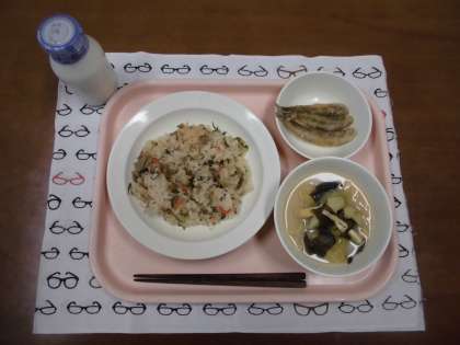 豚肉とごぼうのごはん・牛乳・小魚のから揚げ・みそ汁