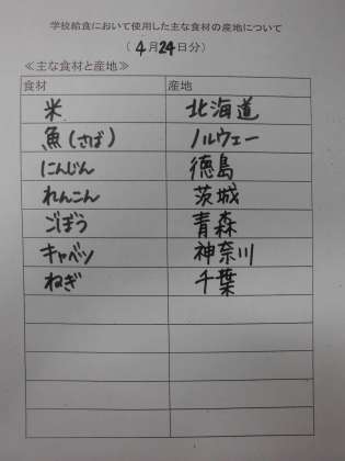 4月24日(火)の給食