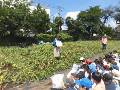 前日までの雨のせいで、ミミズやナメクジも土の中から出てきて悲鳴を上げる子もいましたが、みんなでたっぷり収穫することができました。