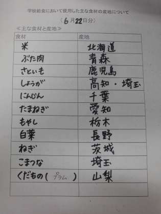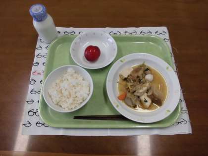 今日の献立)新しょうがとじゃこのごはん・牛乳・すきやき煮・果物(プラム)