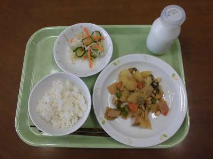 今日の献立)ごはん・牛乳・豆入り筑前煮・野菜のごまあえ