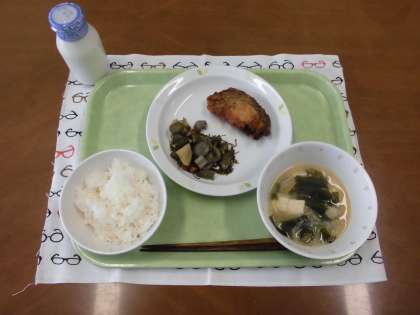 今日の献立)ごはん・牛乳・魚のカリント揚げ・刻み昆布の五目煮・みそ汁