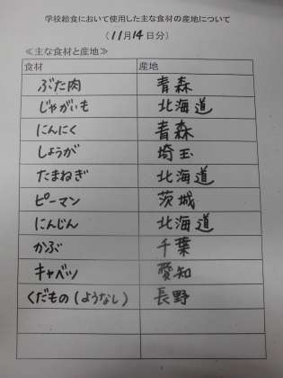 11月14日(水)の給食