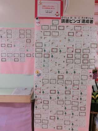 ビンゴ達成者の名前が職員室前に飾られているので、見てくださいね。