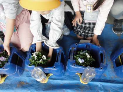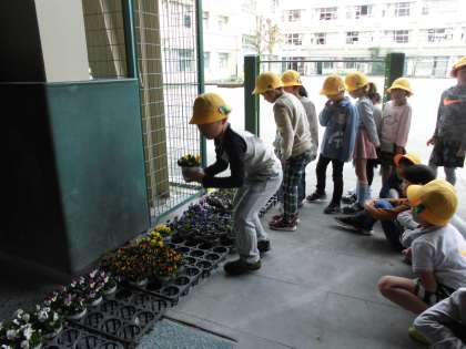 今日は、世田谷区の園芸の方による花の栽培指導がありました。色とりどりのビオラや中—リップの球根を、やわらかい土に植えました。上手に育てると、5月まで花を楽しむことができるそうです。