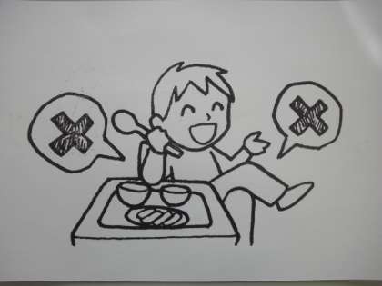 感謝して食べることや、口の中に食べ物が入ったまま話をしないことなど