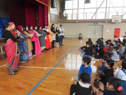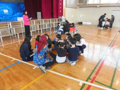 ヒッポファミリーの方々をお招きして、世界の国々の言葉や文化に親しむ学習をしました。いろいろな国の言葉で話してみたり、いろいろな国の話を聞いたり、子どもたちは好奇心をもって学習することができました。