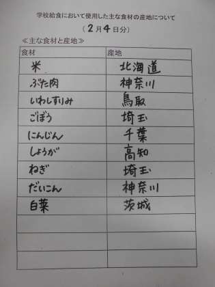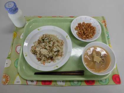 今日は「節分献立」として、「いわしのつみれ汁」「きなこビーンズ」でいわしと大豆を使いました。スプーンはつけません。きなこビーンズもおはしを使って食べましょう。