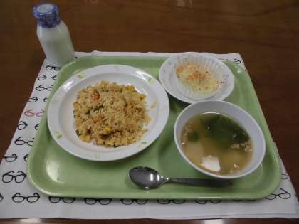 今日の献立)メキシカンライス・牛乳・ポテトのクリーム焼き・かぶのスープ