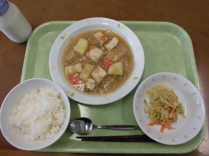 今日の献立)ごはん・牛乳・生揚げのそぼろあん煮・野菜のからしじょうゆあえ