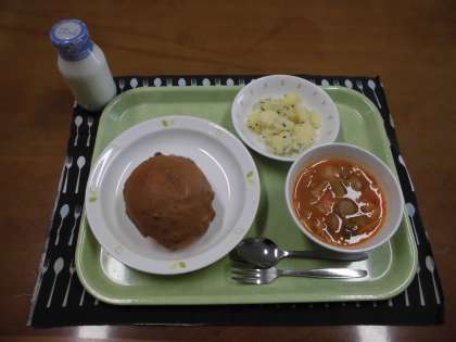 今日の献立)ビスキュイパン・牛乳・ミネストローネスープ・パセリポテト