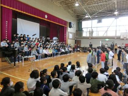 最後に、中丸小のみんなで「通学路」を歌いました。