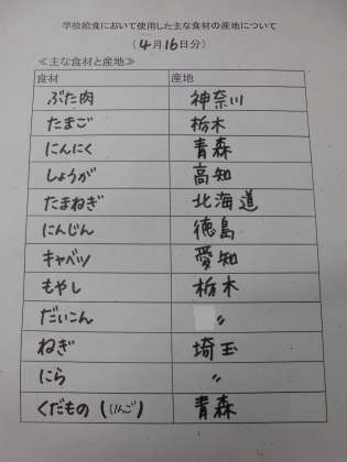 4月16日(火)の給食