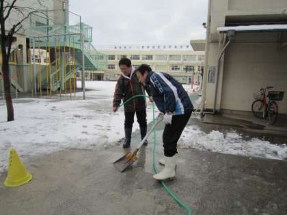 でも、児童や近隣の方が滑らないようにと我慢してもらいました。