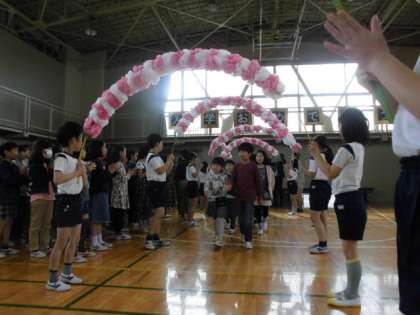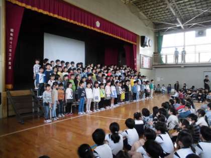 中丸クイズをしたり、プレゼントをもらったりした後は、1年生の言葉と歌を発表しました。