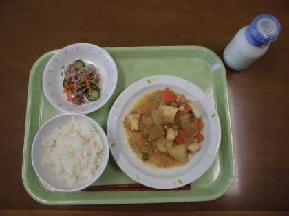 今日の献立)ごはん・牛乳・肉じゃがうま煮・野菜のゆかりあえ