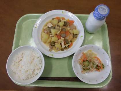 今日の献立)ごはん・牛乳・豆入り筑前煮・野菜のレモンじょうゆかけ