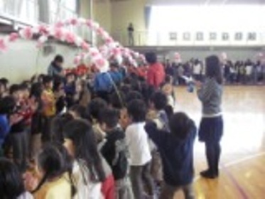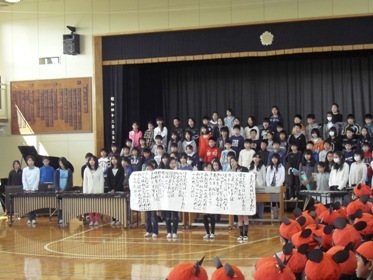 全校児童が一緒になって「6年生を送る会」を開催しました。