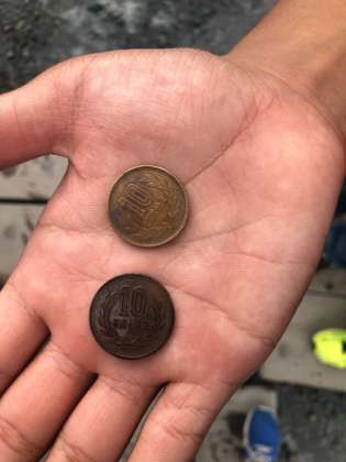 湯本温泉源泉では、10円玉を泉につけると、あら不思議!