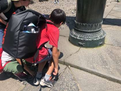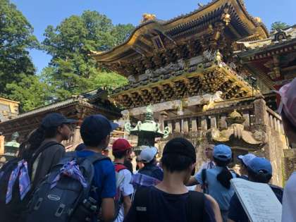 暑い中でしたが、約200段の階段を上がって家康公のお墓を見たり、「三猿」や「眠り猫」などの彫刻を細かいところまで見たりして、感動していました。