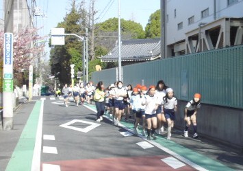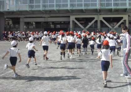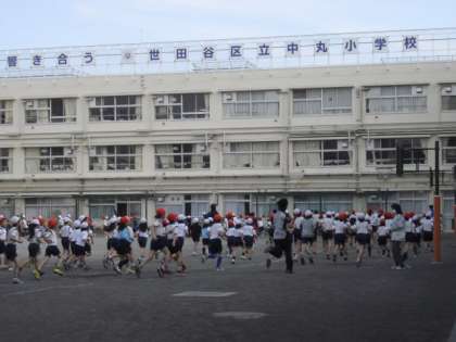 全員で準備体操をしてから、自分のめあてをもとに校庭と近隣の道路を走りました。