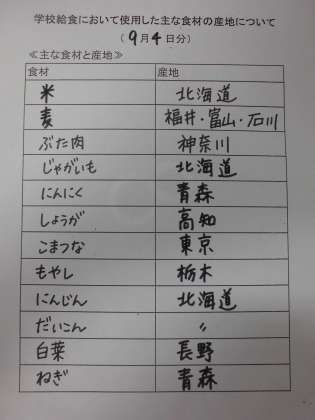 そして今日から2学期の給食です。季節は秋ですが、まだ暑い日もあることでしょう。給食室のみんなはもちろん、食材を届けてくれる業者の方たちもがんばっています。食べ手であるみんなはよくかんで、しっかり食べて後片付けまできちんと行ってください。